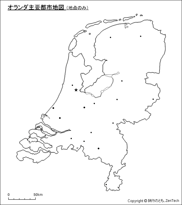 オランダ主要都市地図(地点のみ)(Main cities Map of Netherlands)