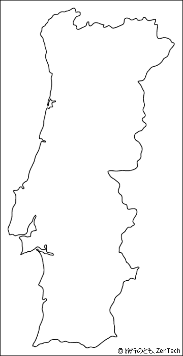 ポルトガル白地図(大サイズ):国境線と海岸線のみ 360pixel X 700pixel