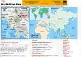 ミャンマー地図(Myanmar) World Atlas の英語ページです。 ミャンマーについての詳細な説明もあり便利です。 「Myanmar Republic Outline Map」をクリックするとミャンマーの白地図も見られます。 |