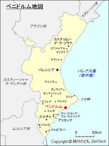 ベニドルム地図(Map of Benidorm, Valenciana, Spain)