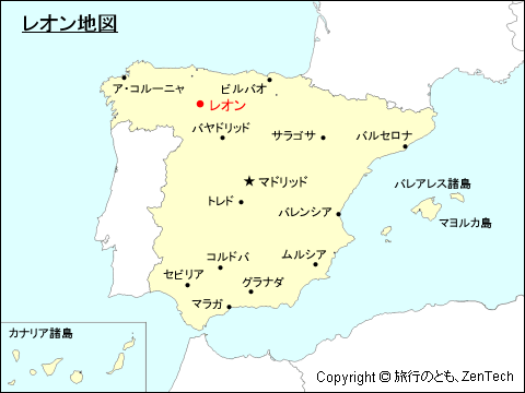 スペインにおけるレオンの位置が判る地図(Map of León, Castilla y Leon, Spain)