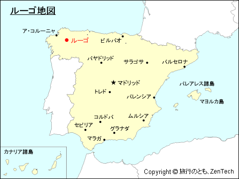 ルーゴの観光名所としては、ルーゴの市壁(ヨーロッパでも珍しい保存状態が極めて良好なローマ時代の市壁、旧市街を360度完全に囲む城壁(71の塔あり)、壁の高さ 10~15メートルで、長さ 2.5キロメートル)、ルーゴ旧市街、ルーゴ大聖堂(サンタ・マリア大聖堂、Lugo Cathedral(Catedral de Santa María)、1129年定礎、1273年完成)、サンフランシスコ修道院&教会(Convent and church of St. Francis、ゴシック様式、現在は県立博物館)、聖ドミニク教会(Church of St. Dominic)、ルーゴ市庁舎(Casa do Concello in Galician)、美術館(Palace of the arts)、ミーニョ川に架かるローマ橋(Roman Bridge over river Minho)ロサリア・デ・カストロ公園(Rosalía de Castro Park、23ヘクタール)、ルーゴ歴史博物館(Museo Interactivo de Historia de Lugo (MIHL))などがあります。