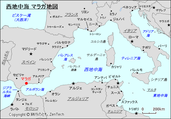 マラガの観光名所としては、マラガ・ピカソ美術館(Picasso Museum、ブエナビスタ宮殿、パブロ・ピカソの作品をメインに展示する美術館、2003年開館)、マラガ大聖堂(Málaga Cathedral、1528年から1782年に建築、ルネサンス様式)、ローマ劇場、アルカサバ(イスラム時代の11世紀以降に築城された要塞)、マラガ闘牛場(1876年完成、ネオムデハル様式、16角形の外観を持つ闘牛場)、マラガ庭園、マラガ大学、ヒブラルファロ城(Castle of Gibralfaro、マラガ市街南東部にある山城)マラガ港(紀元前1000年頃にフェニキア人が造った地中海有数の歴史ある港)、マラガ大学、サンティアゴ・アポストル教会(Iglesia de Santiago Apóstol)、聖心教会(Iglesia del Sagrado Corazón)、サン・フェリペ・ネリ教会(Iglesia de San Felipe Neri)、聖殉教者教会(Iglesia de los Santos Mártires)、アタラサナス市場(Atarazanas Market)、マラガ英国人墓地(Cementerio Inglés de Málaga)、マラガ市立博物館(Museo del Patrimonio Municipal)、マラガ博物館(Museo de Málaga、近代絵画と考古学遺物を展示)、カルメン・ティッセン博物館(Carmen Thyssen Museum)などがあります。