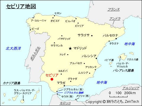 セビリアの観光名所としては、世界遺産「セビリアの大聖堂、アルカサル、インディアス古文書館(Cathedral, Alcázar and Archivo de Indias in Seville)」、セビリア大聖堂(Cathedral of Saint Mary of the See、1402年起工、16世紀完成、カトリック教会の聖堂としてはバチカンのサン・ピエトロ大聖堂に次いで世界で二番目の大きさを誇る大聖堂、内部にクリストファー・コロンブスが埋葬)、アルカサル(Alcázar of Seville、スペイン王室の宮殿、イスラム時代の建物の跡地に14世紀に建築、ムデハル様式の代表例)、インディアス総合古文書館(1584年起工、17世記完成、旧商品取引所を利用した公文書館)、ヒラルダの塔(Giralda、かつてはモスクのミナレット)、トーレ・デル・オロ(黄金の塔、Torre del Oro)、スペイン広場(エスパーニャ広場、Plaza de España, Seville)、セビリア美術館(Museum of Fine Arts of Seville)、(Museum of Arts and Traditions)、セビリア考古学博物館(Archeological Museum of Seville)、アンダルシア現代美術館(Andalusian Contemporary Art Centre)、セビリア民俗博物館(Museum of Arts and Popular Customs of Seville)、海軍博物館(Naval Museum)、フラメンコ美術館(Flamenco Art Museum)、ロペ・デ・ヴェガ劇場(Teatro Lope de Vega)、マエストランサ闘牛場、王立タバコ工場(セビリア大学の本部)、カーサ・デ・ピラトス(Casa de Pilatos、アンダルシア様式の宮殿、メディナセリ公爵邸)、カルトゥハ科学技術パーク(セビリア万博会場跡地)、メトロポール・パラソル(Metropol Parasol、ラエンカルナシオン広場にある木造建築物)、イサベル2世 橋(Puente de Isabel II、1852年建造、長さ 149メートル、高さ 99メートル)、セビリア市庁舎(Casa consistorial de Sevilla)、サン・テルモ宮殿(Palace of San Telmo、アンダルシア州知事公邸)などがあります。