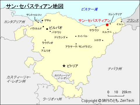 バスク州におけるサン・セバスティアンの位置が判る地図