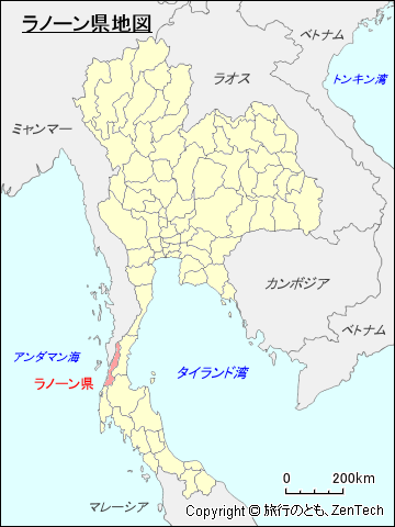 ラノーン県( จังหวัดระนอง , Ranong Province )は、タイ南部にある県です。ラノーン県は、チュムポーン県とスラートターニー県とパンガー県に接しています。ラノーン県の西北側はミャンマーとの国境になっており、南西部はアンダマン海に面しています。