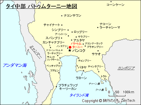 タイ中部におけるパトゥムターニーの場所が判る地図