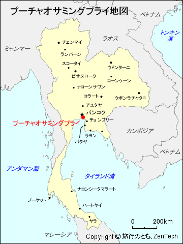タイにおけるプーチャオサミングプライの場所が判る地図