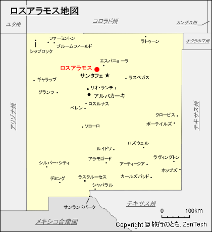 ニューメキシコ州におけるロスアラモスの位置が判る地図