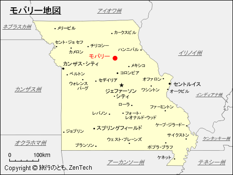 モバリー(Moberly, Missouri)は、アメリカ合衆国中西部のミズーリ州中北部にあるランドルフ郡の最大都市となっている都市です。人口 13,610人(2018年推計)、ミズーリ州内では 54番目に人口の多い街です。モバリー市内には、アメリカ国道 24号線/63号線(U.S. highway 24, 63)が通っています。ミズーリ州の州都ジェファーソン・シティからコロンビアを経由してモバリーまで車やバスで 1時間1分(北へ道なりで 66.6マイル = 107km)です。
