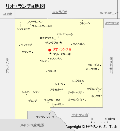 ニューメキシコ州におけるリオ・ランチョの位置が判る地図