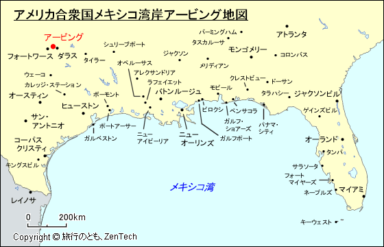 アメリカ合衆国メキシコ湾岸におけるアービングの位置が判る地図